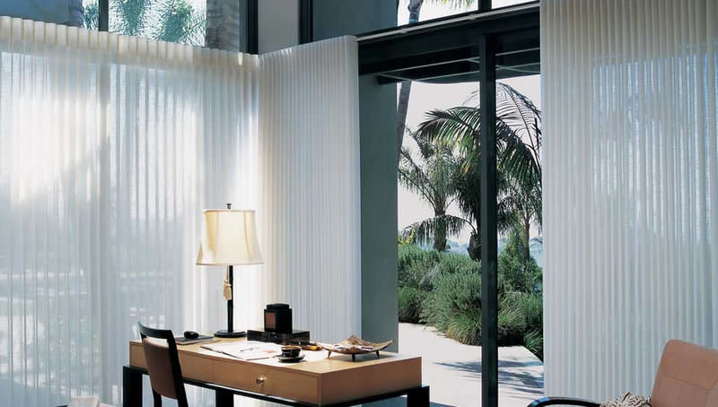 Luminette® Privacy Sheers marry the beauty of sheers with the privacy of soft draperies. Featuring fabric facings attached to fabric vanes that rotate for 180 degrees of light control and privacy.